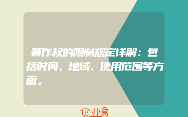 - 著作权的限制规定详解:包括时间、地域、使用范围等方面。