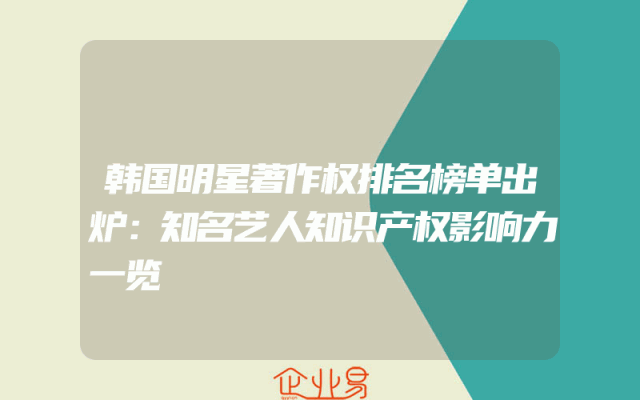 - 韩国明星著作权排名榜单出炉:知名艺人知识产权影响力一览