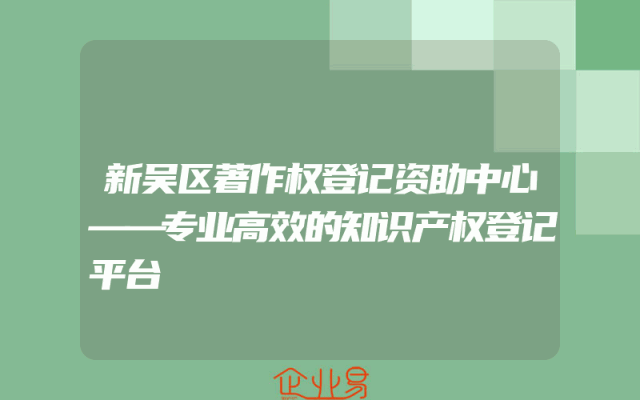 - 新吴区著作权登记资助中心——专业高效的知识产权登记平台