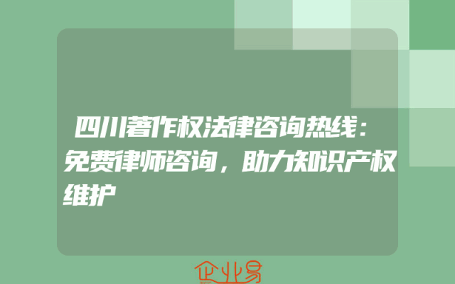 - 四川著作权法律咨询热线:免费律师咨询,助力知识产权维护