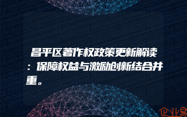 - 昌平区著作权政策更新解读:保障权益与激励创新结合并重。