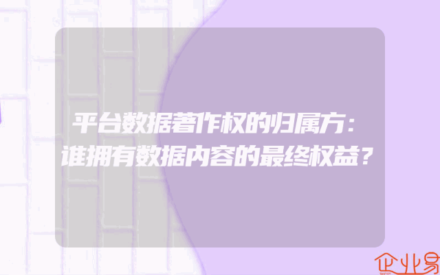 - 平台数据著作权的归属方:谁拥有数据内容的最终权益?