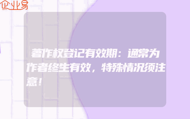 - 著作权登记有效期:通常为作者终生有效,特殊情况须注意!