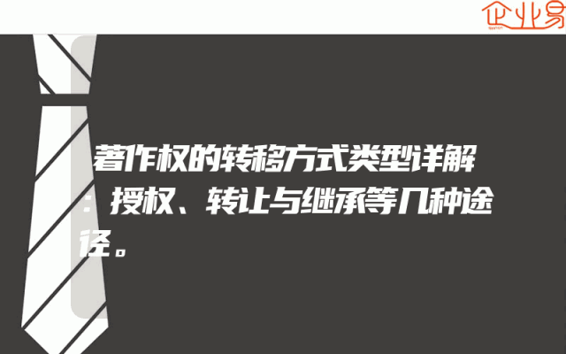 - 著作权的转移方式类型详解:授权、转让与继承等几种途径。