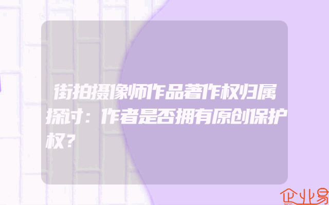- 街拍摄像师作品著作权归属探讨:作者是否拥有原创保护权?