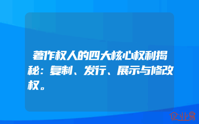 - 著作权人的四大核心权利揭秘:复制、发行、展示与修改权。