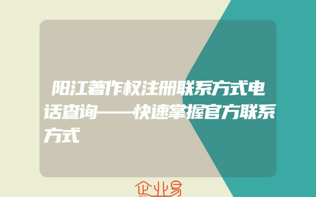 - 阳江著作权注册联系方式电话查询——快速掌握官方联系方式