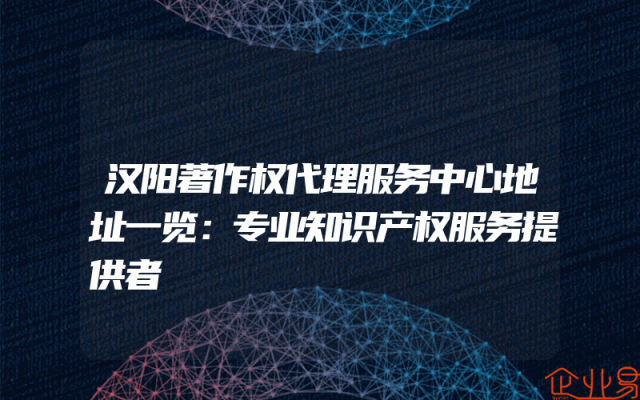 - 汉阳著作权代理服务中心地址一览:专业知识产权服务提供者