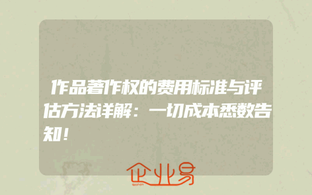 - 作品著作权的费用标准与评估方法详解:一切成本悉数告知!