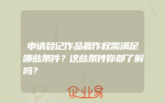 - 申请登记作品著作权需满足哪些条件?这些条件你都了解吗?