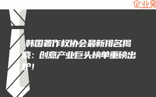 - 韩国著作权协会最新排名揭晓:创意产业巨头榜单重磅出炉!