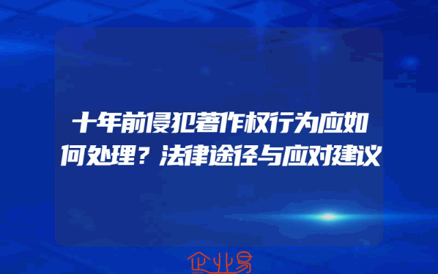- 十年前侵犯著作权行为应如何处理?法律途径与应对建议