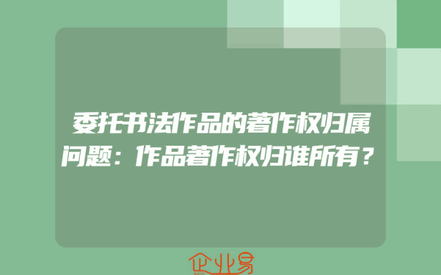 - 委托书法作品的著作权归属问题:作品著作权归谁所有?
