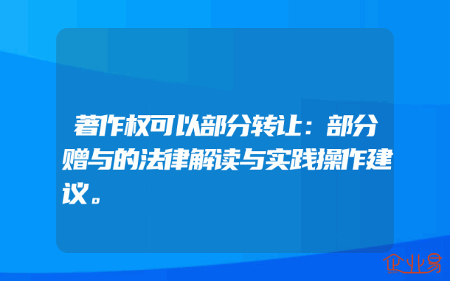 - 著作权可以部分转让:部分赠与的法律解读与实践操作建议。