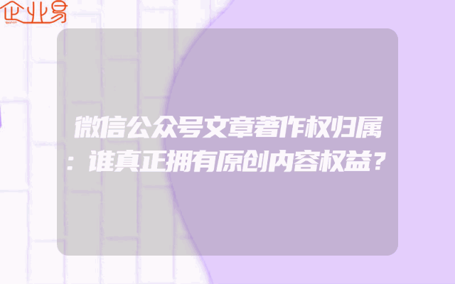 - 微信公众号文章著作权归属解析:谁真正拥有原创内容权益?一、著作权基础概念在探讨微信公众号文章的著作权归属问题之前,我们首先需要了解著作权的基础概念。著作权,又称为版权,是创作者对其创作的文学、艺术