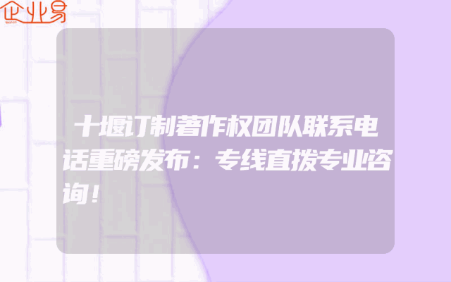 - 十堰订制著作权团队联系电话重磅发布:专线直拨专业咨询!