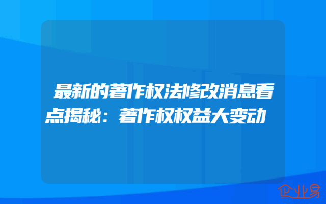 - 最新的著作权法修改消息看点揭秘:著作权权益大变动
