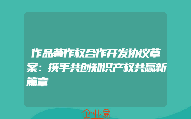 - 作品著作权合作开发协议草案:携手共创知识产权共赢新篇章