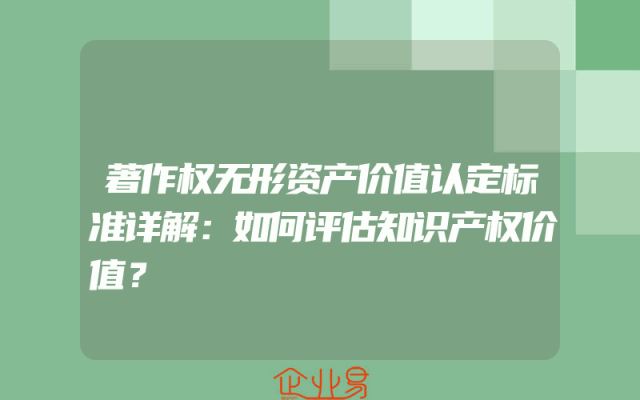 - 著作权无形资产价值认定标准详解:如何评估知识产权价值?