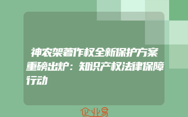- 神农架著作权全新保护方案重磅出炉:知识产权法律保障行动