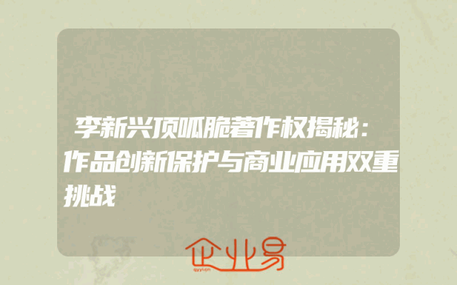 - 李新兴顶呱脆著作权揭秘:作品创新保护与商业应用双重挑战