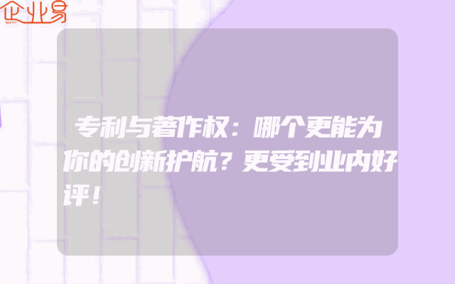 - 专利与著作权:哪个更能为你的创新护航?更受到业内好评!一、专利与著作权概述在当今社会,知识产权的保护日益受到重视,专利和著作权作为知识产权的两大重要组成部分,各自在保护创新成果方面发挥着不可替代的作用。那么,究竟哪个更能为创新护航,更受到业