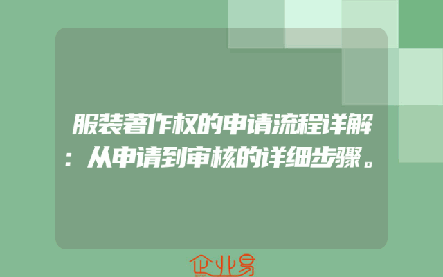 - 服装著作权的申请流程详解:从申请到审核的详细步骤。
