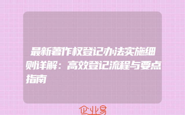 - 最新著作权登记办法实施细则详解:高效登记流程与要点指南一、引言随着科技的发展和知识产权的重要性日益凸显,著作权登记成为了保护创作者权益的关键环节。最新的著作权登记办法实施细则旨在提供更加高效、便捷的登记流程,以更好地保护著作权人的合法权益。