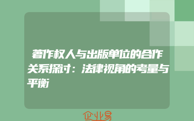 - 著作权人与出版单位的合作关系探讨:法律视角的考量与平衡