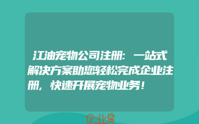 - 江油宠物公司注册:一站式解决方案助您轻松完成企业注册,快速开展宠物业务!