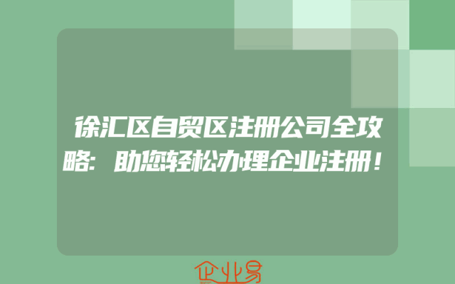 - 徐汇区自贸区注册公司全攻略:助您轻松办理企业注册!