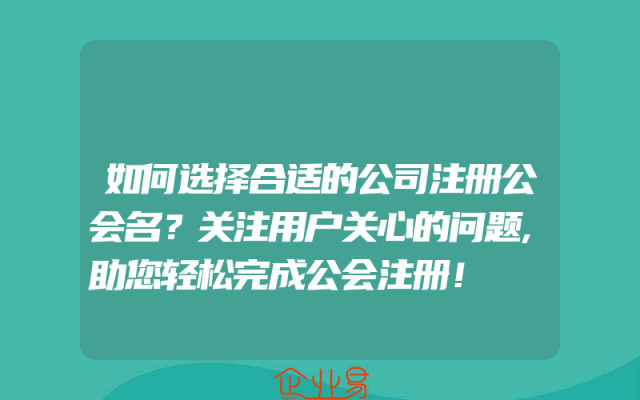 - 如何选择合适的公司注册公会名?关注用户关心的问题,助您轻松完成公会注册!