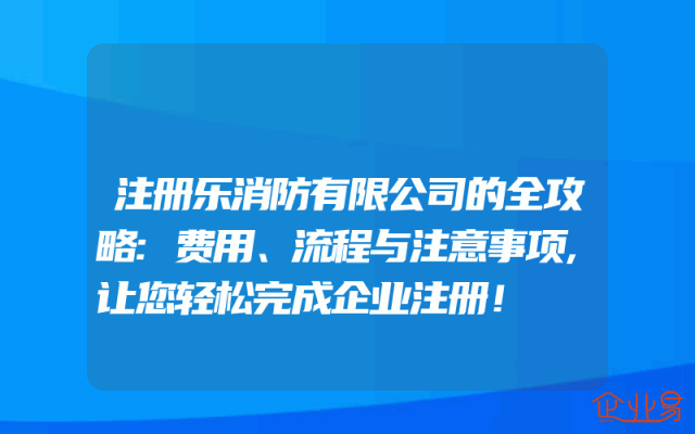 - 注册乐消防有限公司的全攻略:费用、流程与注意事项,让您轻松完成企业注册!