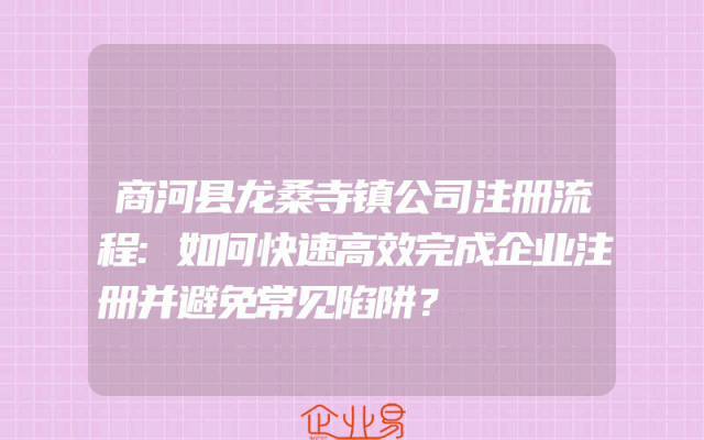 - 商河县龙桑寺镇公司注册流程:如何快速高效完成企业注册并避免常见陷阱?