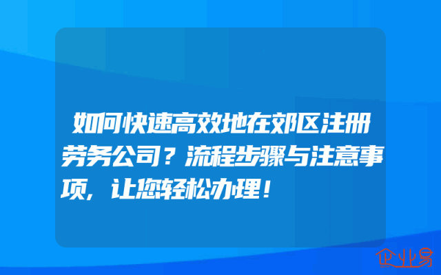 - 如何快速高效地在郊区注册劳务公司?流程步骤与注意事项,让您轻松办理!