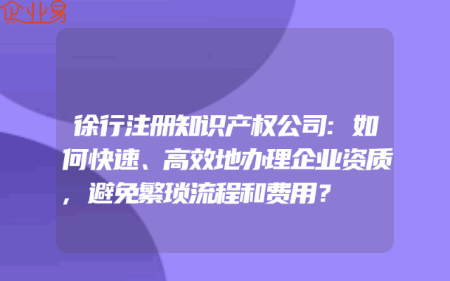 - 徐行注册知识产权公司:如何快速、高效地办理企业资质,避免繁琐流程和费用?