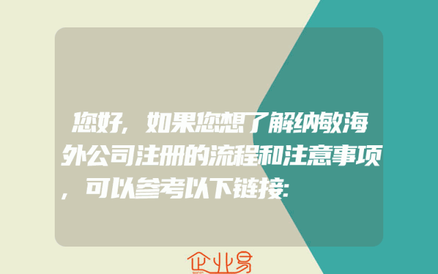 - 您好,如果您想了解纳敏海外公司注册的流程和注意事项,可以参考以下链接: