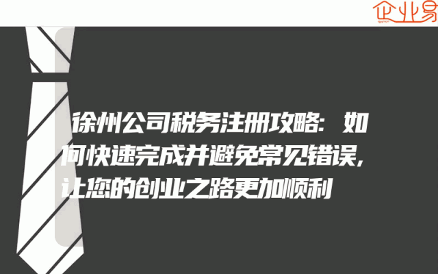 - 徐州公司税务注册攻略:如何快速完成并避免常见错误,让您的创业之路更加顺利