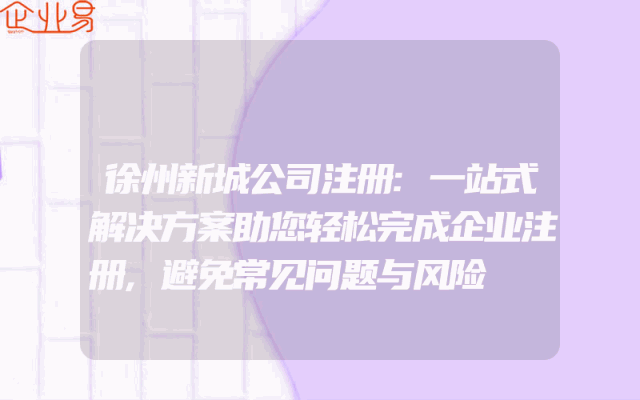 - 徐州新城公司注册:一站式解决方案助您轻松完成企业注册,避免常见问题与风险