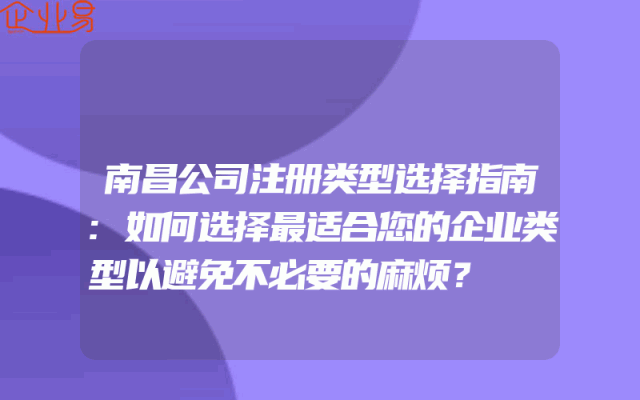 - 南昌公司注册类型选择指南:如何选择最适合您的企业类型以避免不必要的麻烦?