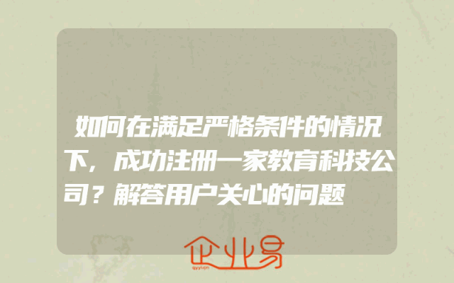 - 如何在满足严格条件的情况下,成功注册一家教育科技公司?解答用户关心的问题