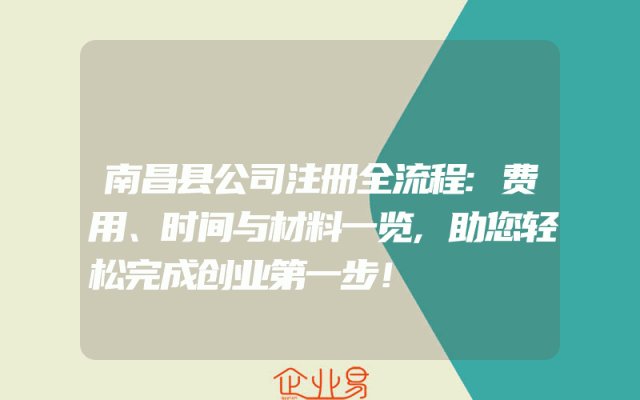 - 南昌县公司注册全流程:费用、时间与材料一览,助您轻松完成创业第一步!