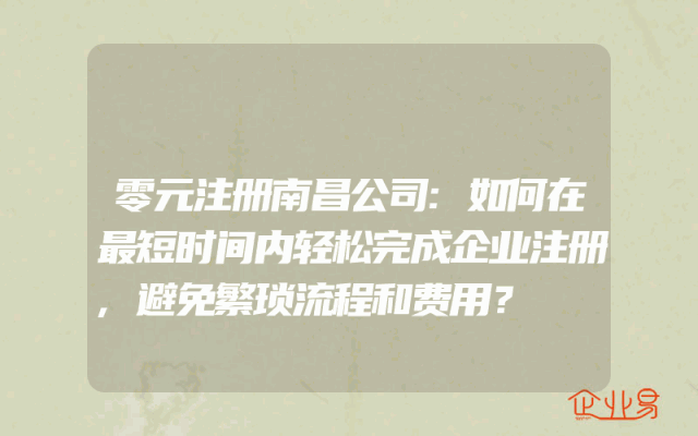 - 零元注册南昌公司:如何在最短时间内轻松完成企业注册,避免繁琐流程和费用?