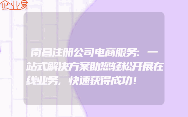 - 南昌注册公司电商服务:一站式解决方案助您轻松开展在线业务,快速获得成功!