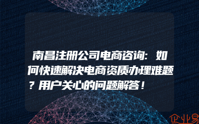 - 南昌注册公司电商咨询:如何快速解决电商资质办理难题?用户关心的问题解答!