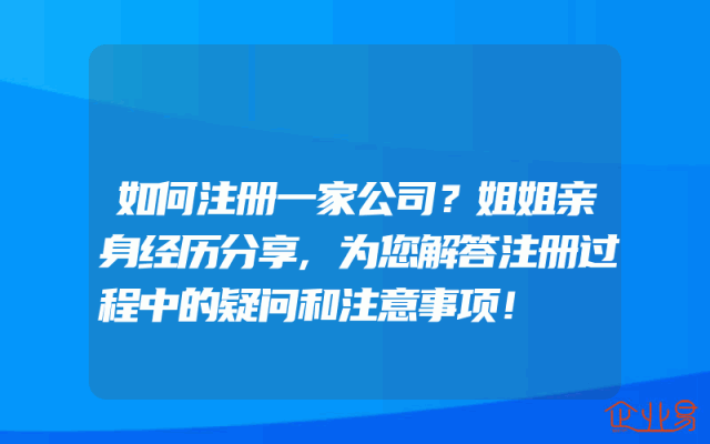 - 如何注册一家公司?姐姐亲身经历分享,为您解答注册过程中的疑问和注意事项!在当今社会,创业已经成为了许多人的首选。而要创业,首先需要注册一家公司。那么,如何注册一家公司呢?本文将通过一位姐姐的亲身经历,为大家详细解答注册过程中的疑问和注意事项
