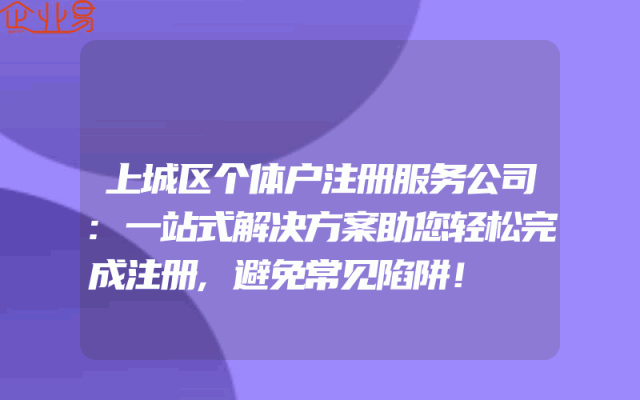 - 上城区个体户注册服务公司:一站式解决方案助您轻松完成注册,避免常见陷阱!
