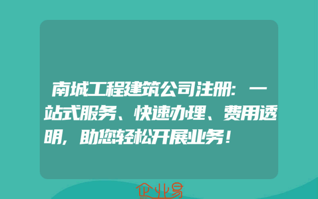 - 南城工程建筑公司注册:一站式服务、快速办理、费用透明,助您轻松开展业务!