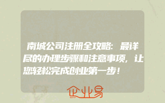 - 南城公司注册全攻略:最详尽的办理步骤和注意事项,让您轻松完成创业第一步!