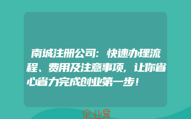 - 南城注册公司:快速办理流程、费用及注意事项,让你省心省力完成创业第一步!